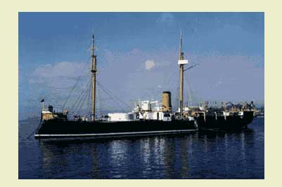 Monitor Huascar en la actualidad. Reposa en la base naval de Talcahuano, Chile.