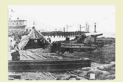 Foto en la que se puede apreciar el famoso cañón del pueblo en la fortaleza del Real Felipe (Callao) durante los preparativos a la guerra con España.