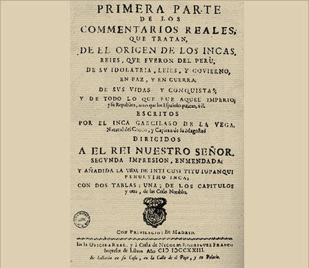 Portada de los "Comentarios reales de los Incas", escrita por Garcilaso de la Vega, publicada en Lisboa en 1609.