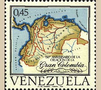 Estampilla. 150 Aniversario de la Creación de la Gran Colombia.