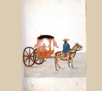 Españolas en calesa. Acuarela de Martínez de Compañón.