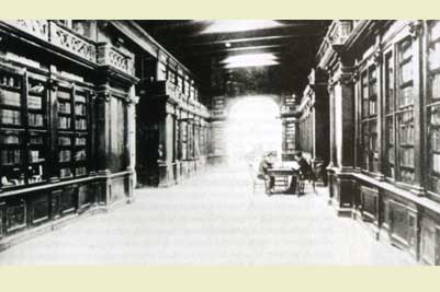 Interior de la Biblioteca Nacional fue fundada el 8 de agosto 1821 como parte de la política educativa del gobierno del general José de San Martín, quien obsequió 726 volúmenes. Siglo XIX.