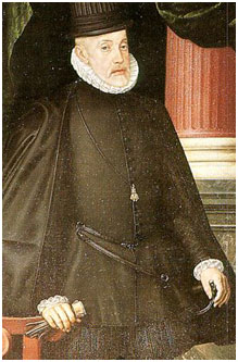 "Felipe II". Óleo del pintor español Juan Pantoja de la Cruz (1553 - 1608). Monasterio de San Lorenzo, El Escorial.