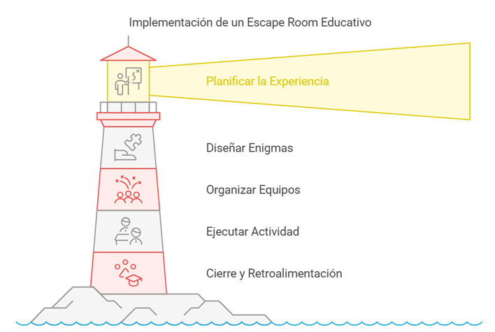 Un Escape Room es un juego en el que un grupo de personas debe resolver una serie de acertijos o enigmas en un tiempo limitado para “escapar” de una habitación o situación ficticia. Generalmente, se utilizan candados, códigos secretos, pistas y narrativa para ambientar el desafío (Nicholson, 2015). En el contexto escolar, no es necesario contar con una habitación especialmente diseñada; basta con reproducir la experiencia mediante candados físicos o virtuales y enigmas temáticos alineados al contenido de la asignatura.
